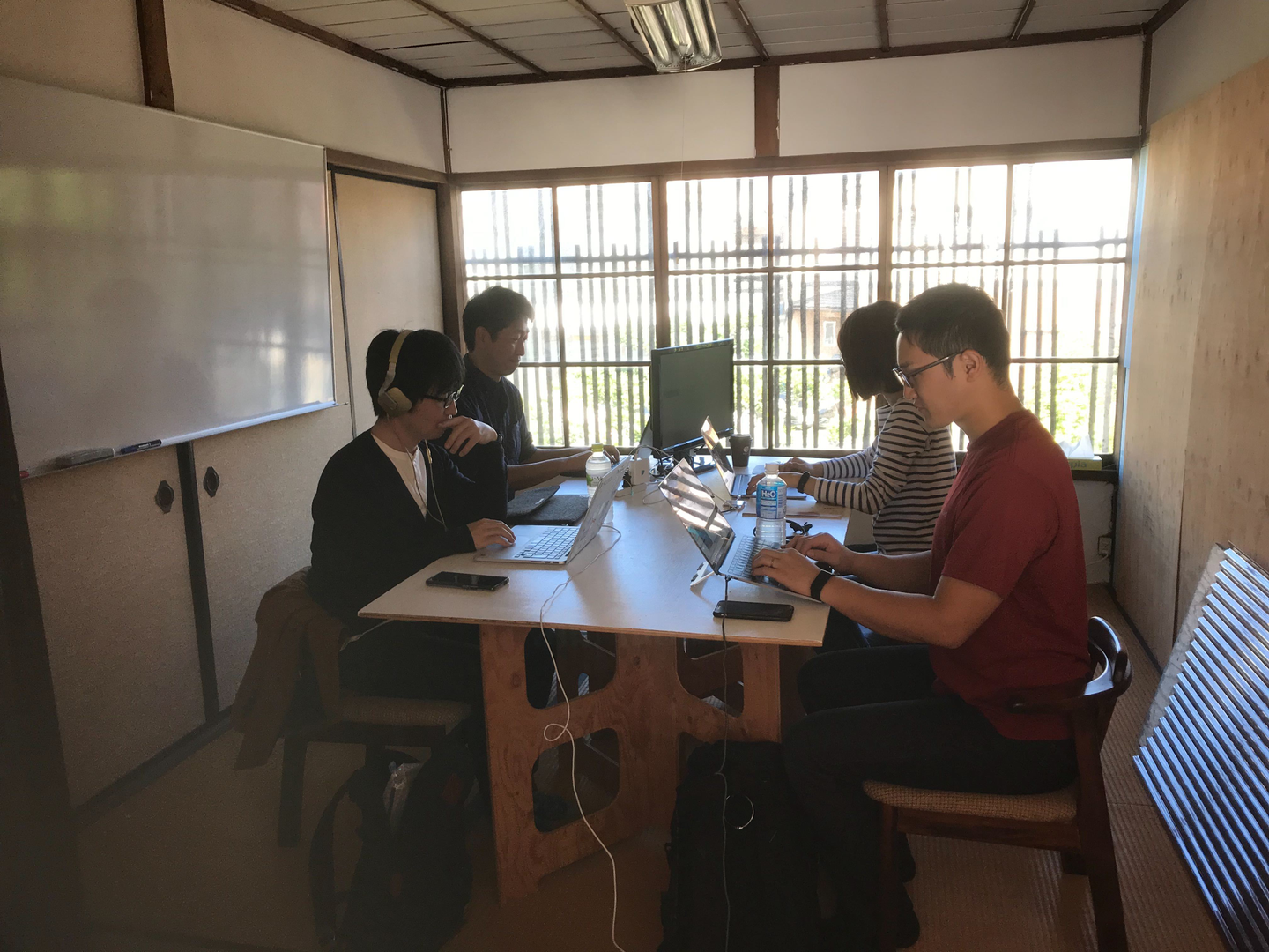 普段はリモートワーク中心のエンジニアもいるので、こうして物理的に集まって作業する機会は貴重な時間です。初日は、移動疲れもありましたが、14:30 ~ 17:30まできっちり仕事をこなしました。