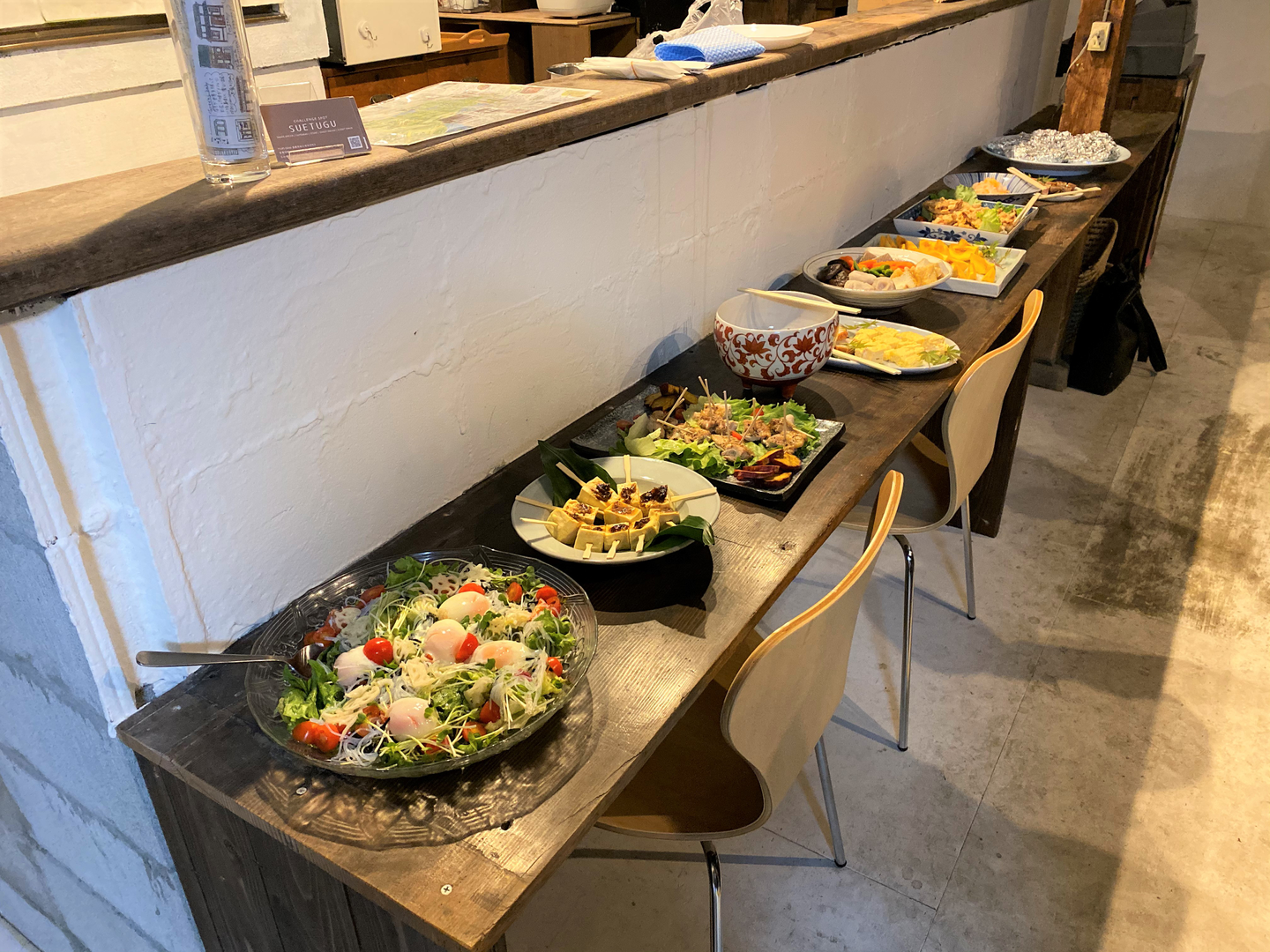 夕食は、バイキング形式です。彩鮮やかで、どの料理も美味しそう。