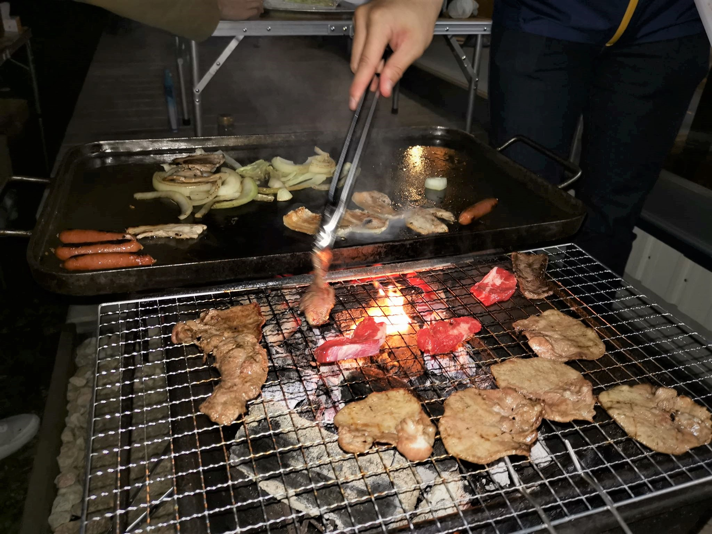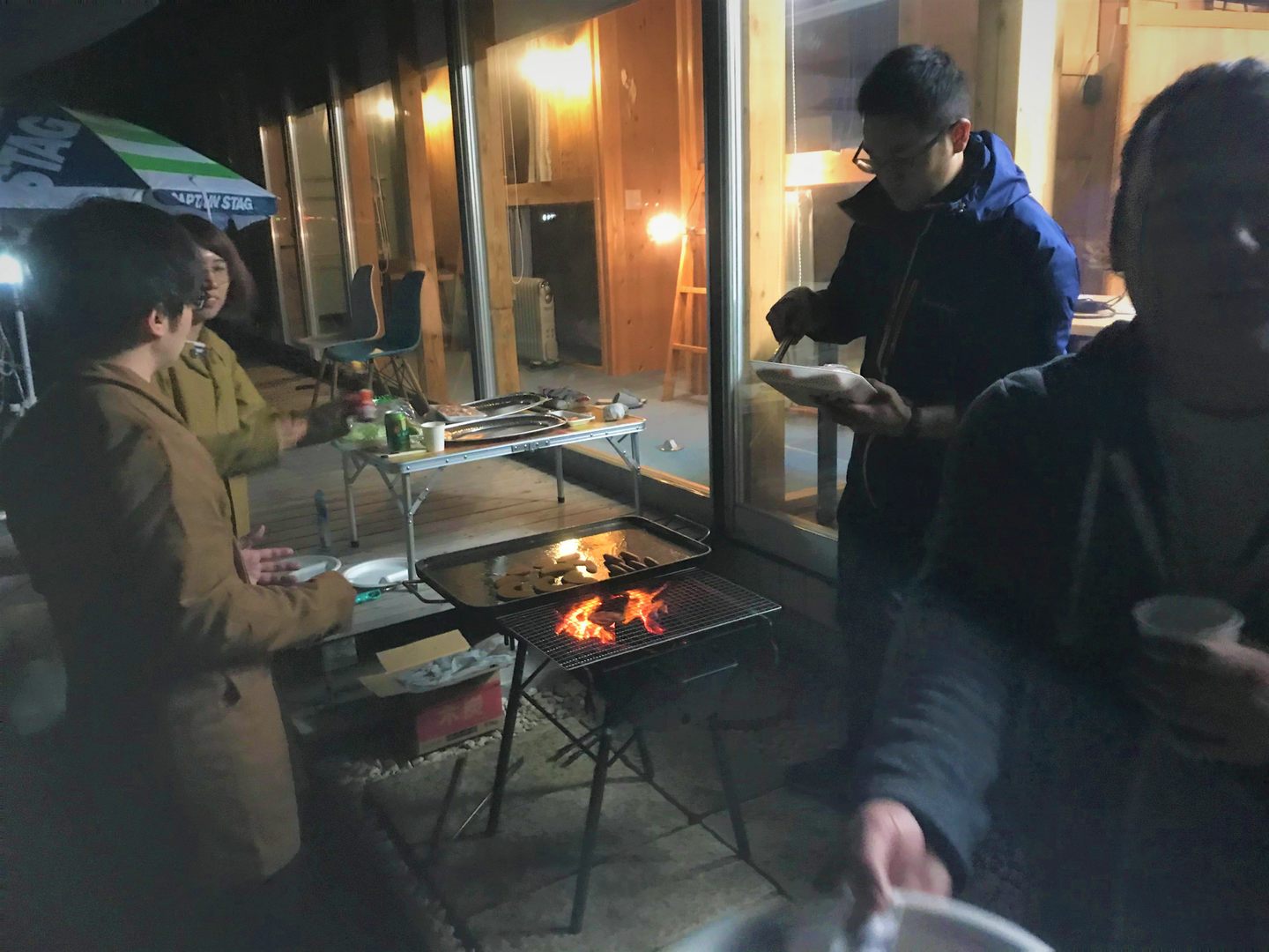 夕食はみんなでBBQです。松江オフィスのメンバーも参加しました。
