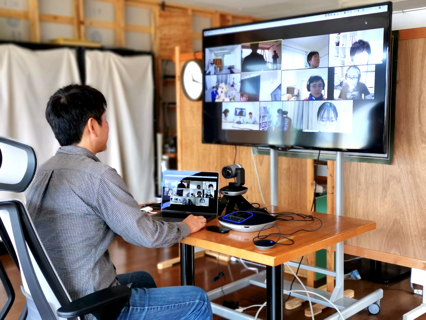 仕事中の写真。Misocaのリモート勤務者は、Zoomで常にコミュニケーションを取れるようにしています。