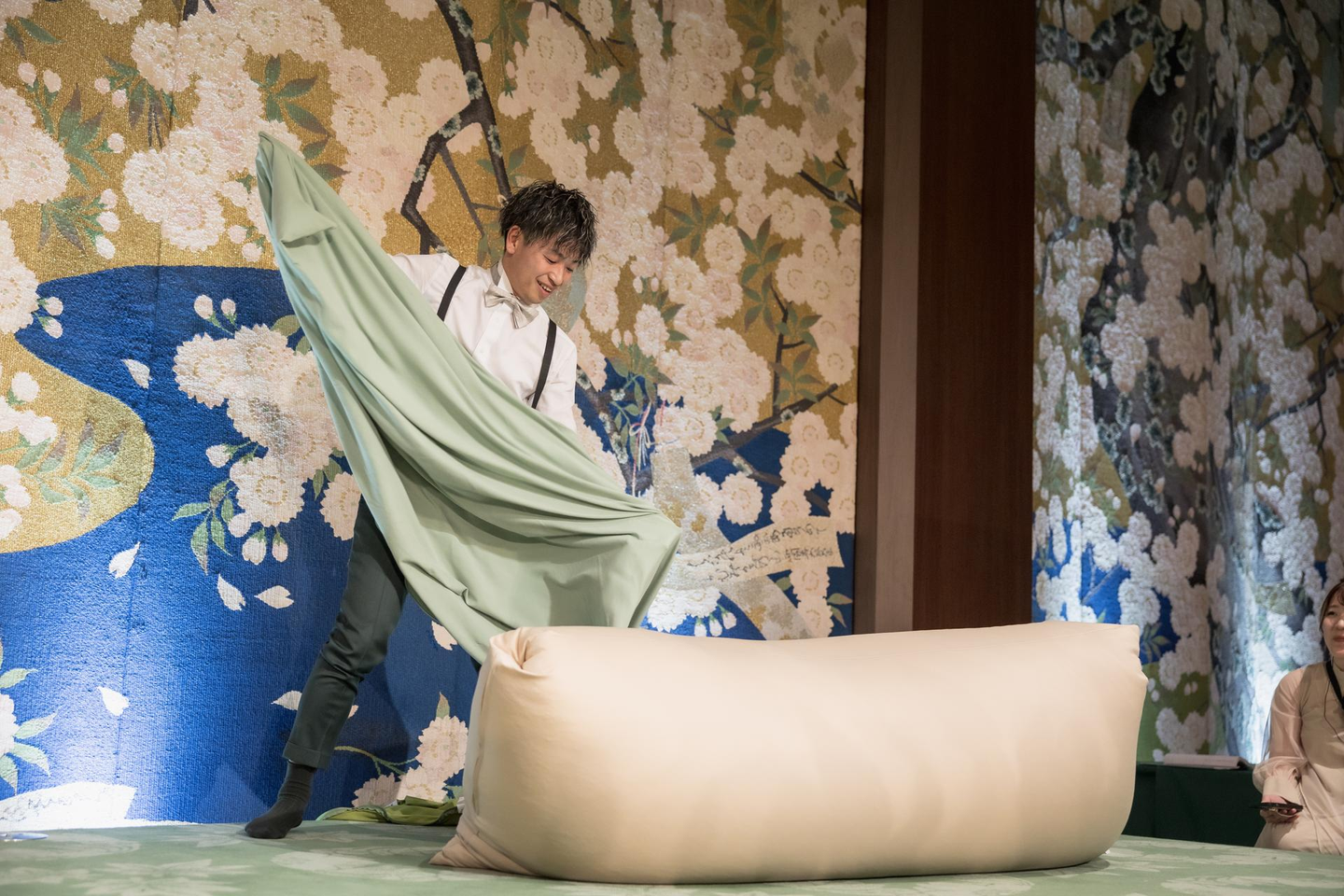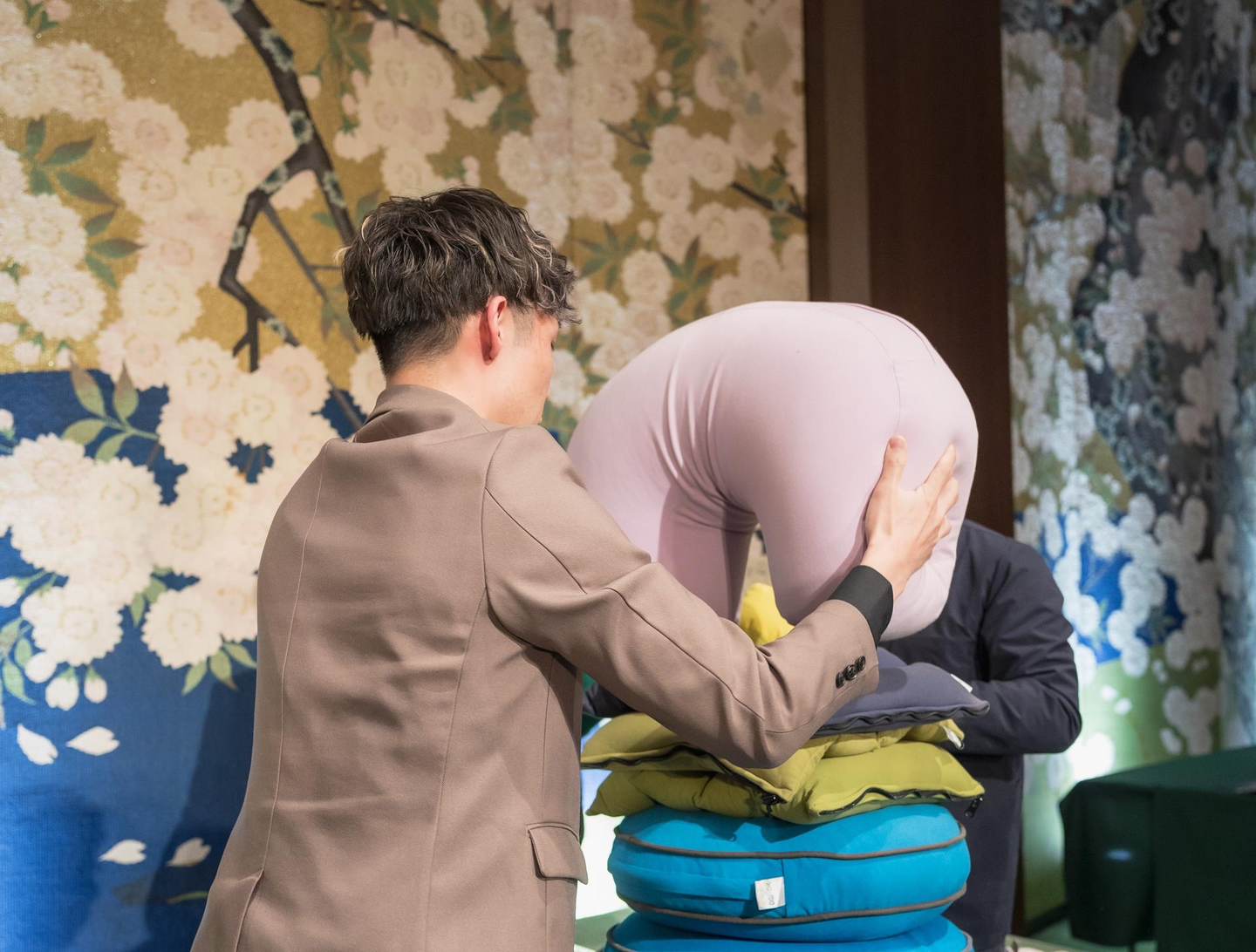 取締役3名が率いるピンク・ブルー・グリーンチームに分かれ、Yogibo商品を使った積み上げ競争やカバー掛けスピード対決、Yogiboに関するクイズなど、ユニークな競技でチーム対抗戦が行われました。