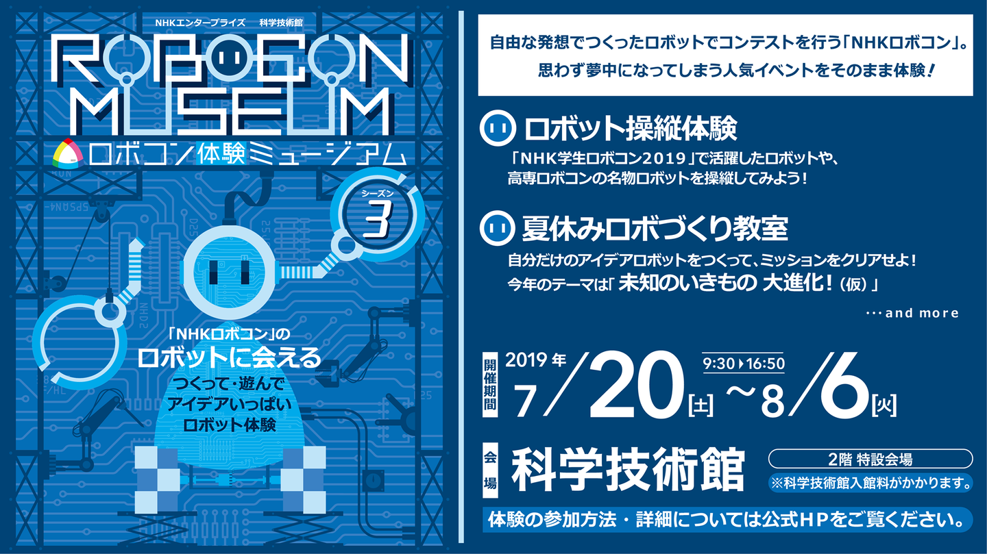 7/20(土)から、NHKのテレビでおなじみの「ロボコン」に出場した本物のロボットを体験できる『ロボコン体験ミュージアム シーズン3』が始まりました!