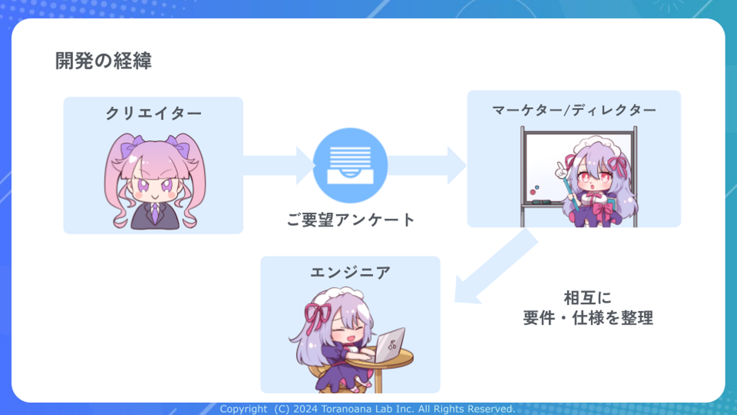 虎の穴ラボは、主に「とらのあな通信販売」や「Fantia(ファンティア)」など、虎の穴に関連するWebサービスのシステム開発を専門に担っています。1994年に秋葉原で創業した虎の穴は、近年オンライン事業を積極的に進め、通販・Webサービスに注力しています。2024年にはグループ全体で流通総額が366億円を超え、サービス登録ユーザー数は1931万人を突破しました。