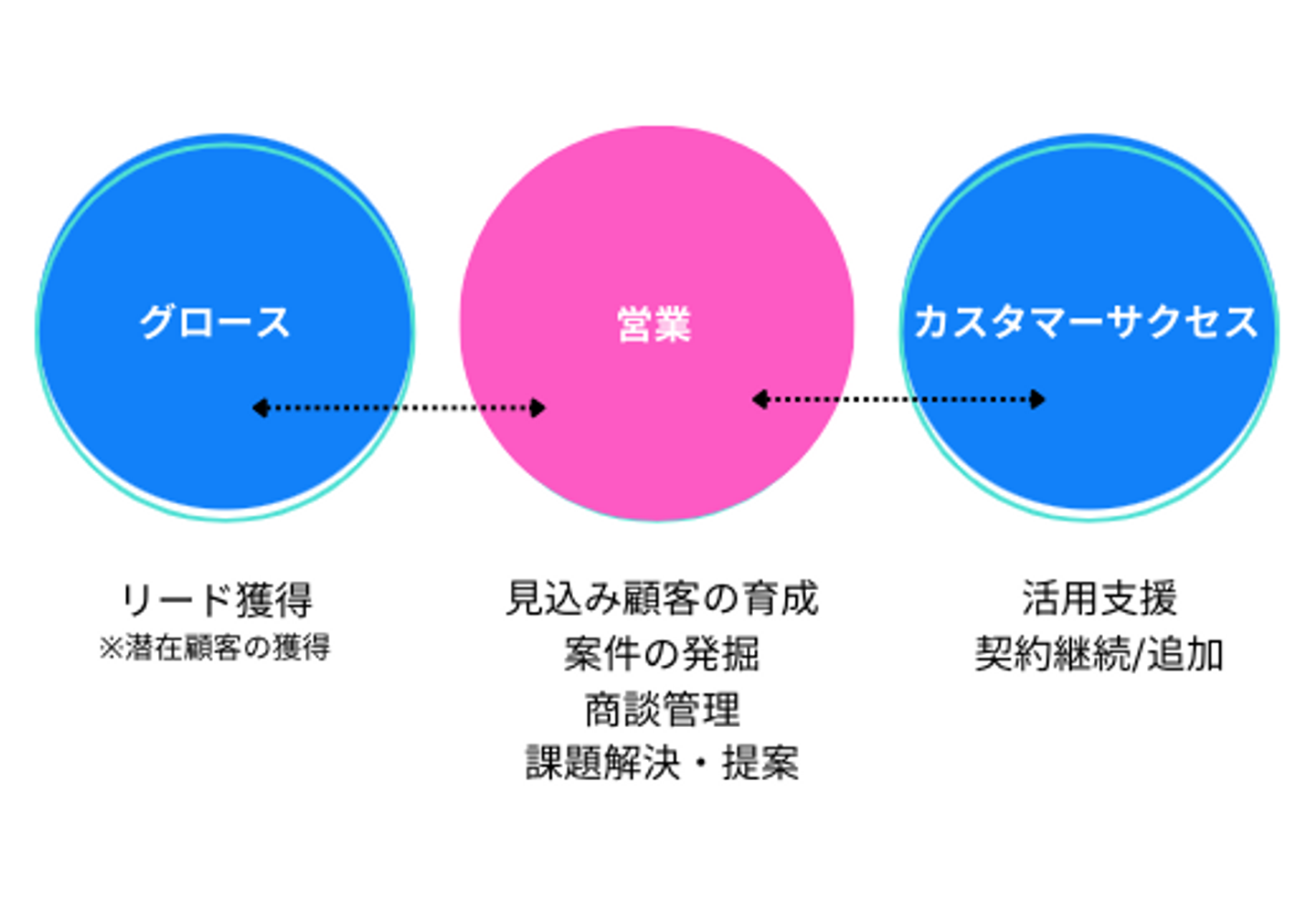 それに加えて、グロース(マーケティング)・カスタマーサクセス・プロダクトに関わる部署のため部署内外との連携が欠かせません。「営業」をするだけではなくさまざまな情報連携・課題発見・発信を必要とする、とても重要なポジションです!