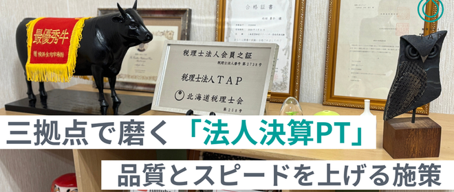 TAPには、本別町・帯広市・札幌市の三拠点があります。ここ数カ月、各拠点の代表者が集まり、「もっと良い仕事の進め方はないか」「他拠点の良いところをどう取り入れるか」を話し合う機会が増えてきました。今回はその中から、TAPの中核業務のひとつである法人決算を支える「法人決算PT(プロジェクトチーム)」について、今どんな改善に取り組んでいるのかをご紹介します。法人決算PTとは?法人決算は、ただ申告書を作って終わりではありません。経営者にとっては「次の意思決定」に直結する大切なタイミングです。だからこそTAPでは、決算業務を“属人化”させずに、拠点をまたいで品質とスピードを上げるためのチームとし...