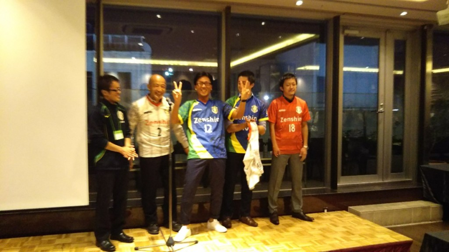 「Zenshin」と入ったユニフォームを贈呈され、嬉しそうな戸川代表♪