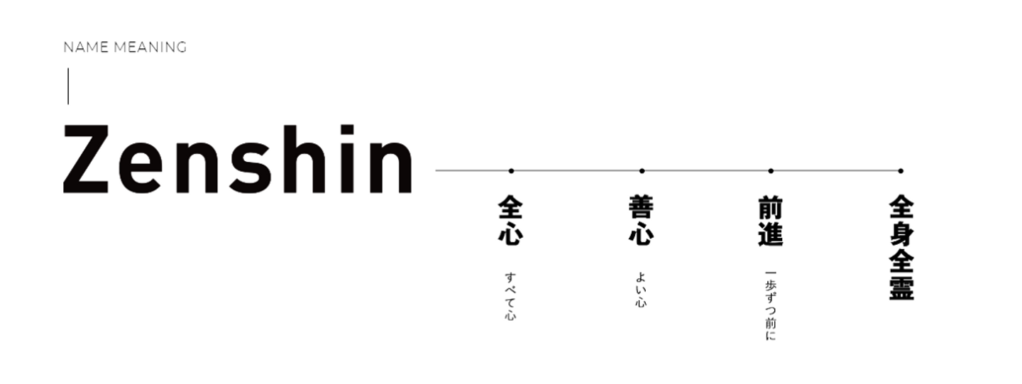 ゼンシンという名前には4つの意味が込められていますが、1つ目は「全心(全て心)」という想いからきています。