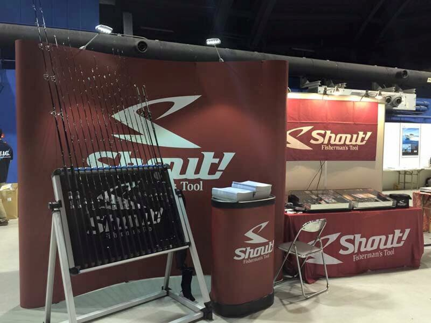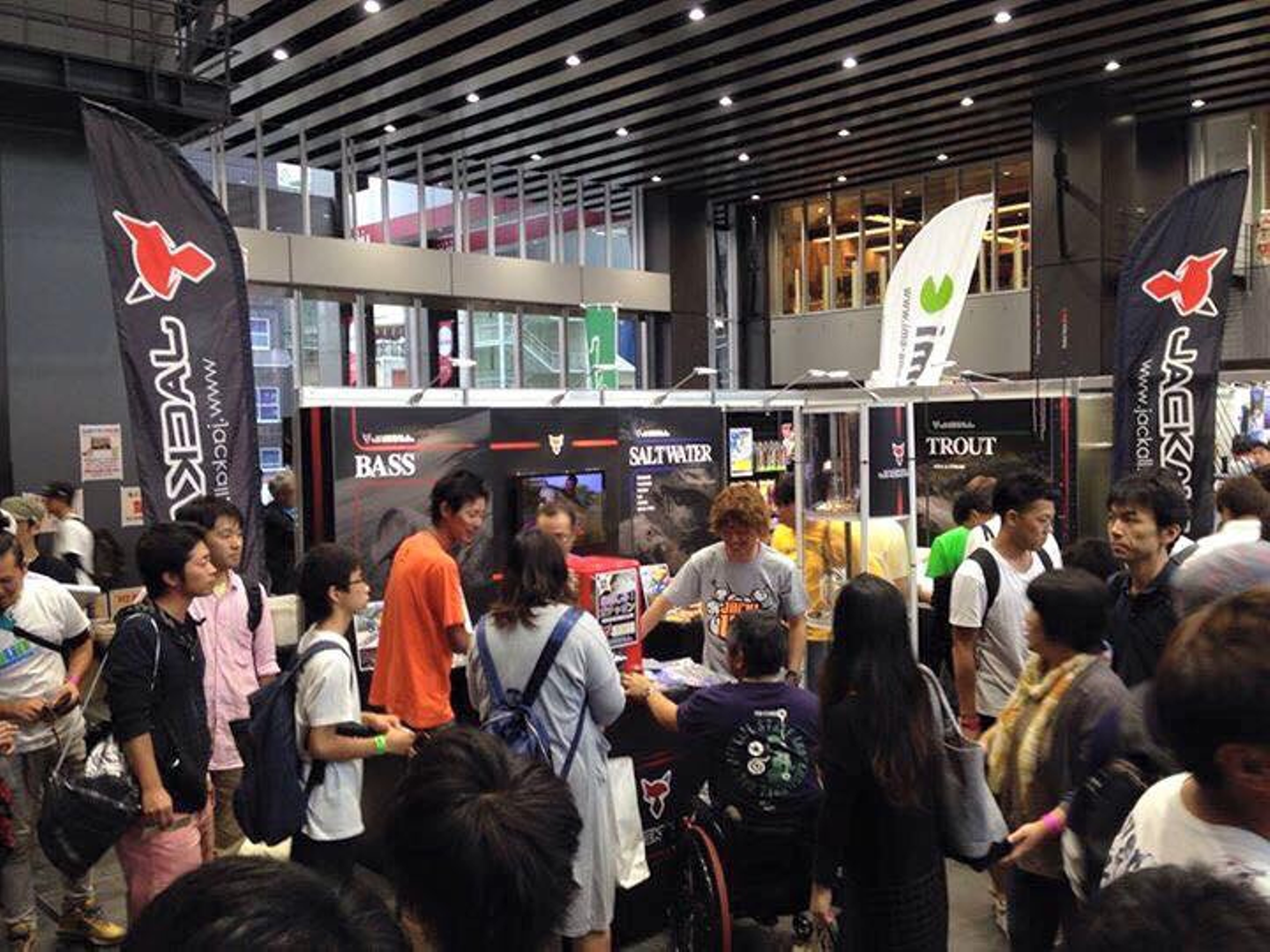 業界のトップブランドD社、S社をはじめ釣り業界でのシェアをもつ私たちの※「凄いブース」(モバイルブース)です。
