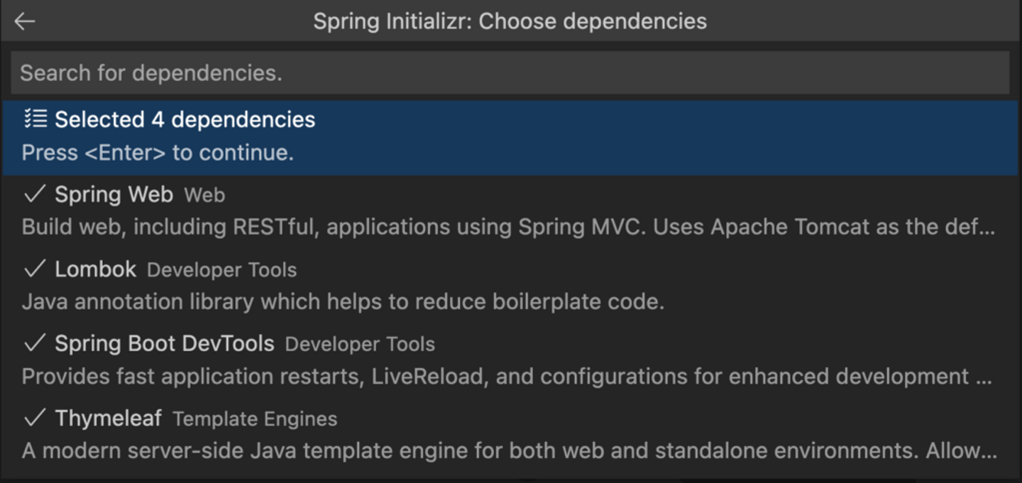 Spring WebLomboksetterやgetterなどの冗長なコードの記述を省けますSpring Boot DevToolsファイルを保存した瞬間に、webアプリケーションを自動で再起動してくれますThymeleafspring_bootが標準で使うテンプレートエンジンです