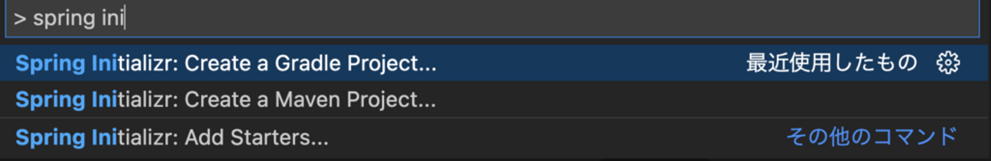 コマンドパレットから、Gradleプロジェクトのspring bootを選択します