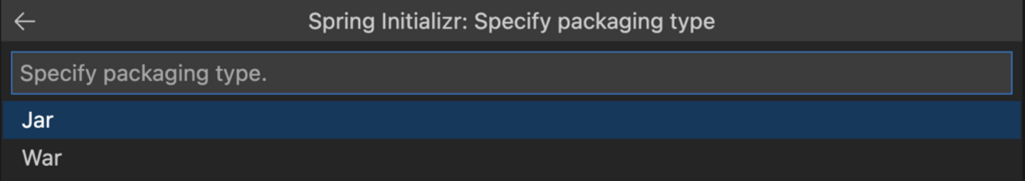 パッケージタイプはjarを選択します。