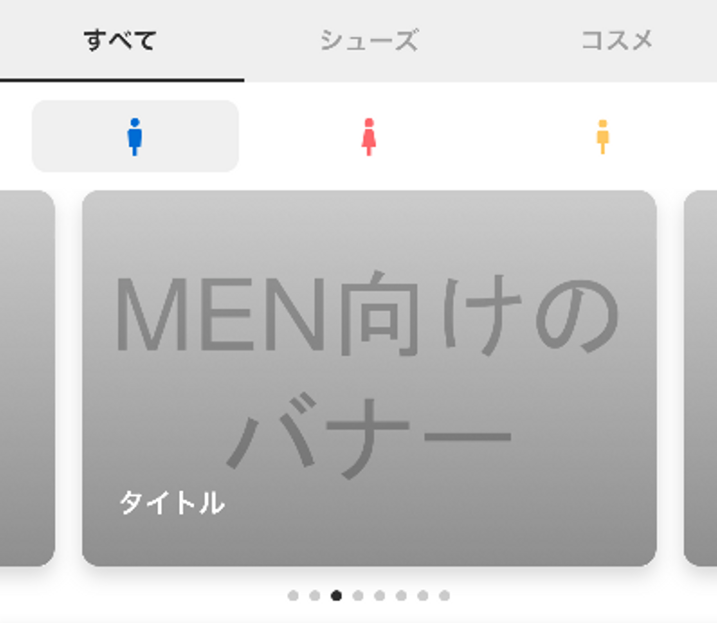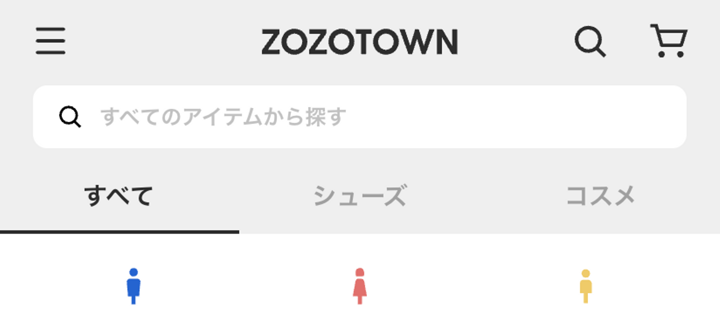 ホーム画面で利用しているAPIは、大部分がBFF(Backend For Frontend)から提供されており、レガシーシステムへの依存が比較的少ない アクセス数や機能が多く、開発や運用のナレッジを蓄積しやすい サービスの象徴的ページであり、開発のモチベーションが湧きやすい さらにリプレイスの付加価値としてSPA(Single Page Application)化することでページ遷移を高速にし、UXの向上を考えました。具体的にはホーム画面では、下記の図のような商品のカテゴリーや性別を切り替えるタブUIがあります。