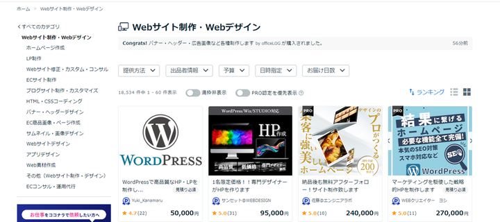 ココナラにおいてプラチナランク WEBサイト制作・WEBデザインにおいてランキング最高2位を取得しました。