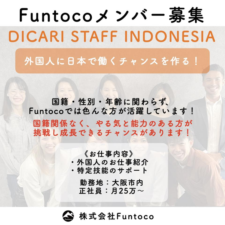日本の方々の働きぶりが好きで大学卒業したからずっと日本の会社で働きました。 Funtocoで人生の新たなチャンスを作り出していることを知り、とても刺激を受けたからです。 また、日本で働きたいインドネシア人に多くのチャンスがあることを知り、そのチャンスを提供する側になりたいと思いました。