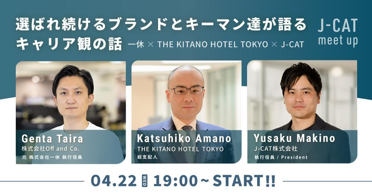 【J-CAT meet up】選ばれ続けるブランドとキーマン達が語るキャリア観の話 | 一休×THE KITANO HOTEL TOKYO×J-CAT
