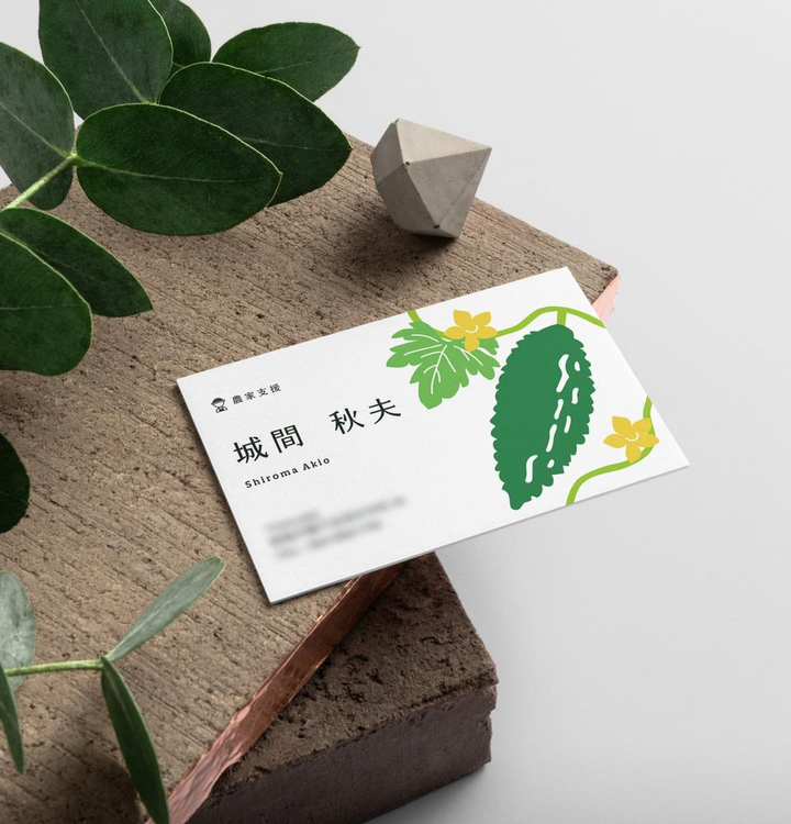 素敵なご縁をいただき、農家支援事業の立ち上げを計画している城間さまより、名刺制作のご依頼をいただきました。 沖縄のご出身で、主にゴーヤを取り扱うとのことで、ゴーヤのイラストをメインにあしらい、インパクトのある名刺に仕上げました。 事業立ち上げ前ということもあり、記載内容は最小限ですが、「ゴーヤの城間さん」のように記憶に残ることを目的として、パッと目をひくデザインを目指しました。