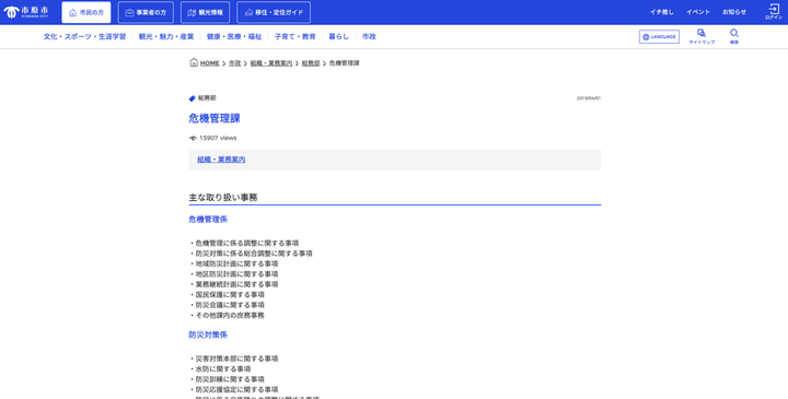 千葉県市原市役所 / 危機管理課・備蓄品担当主事