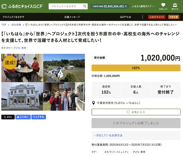 目標額(200,000円)を大きく上回る計1,020,000円ものご支援をいただくことができました。