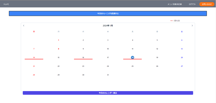 Laravel9とVue3、TypeScriptを用いて日々の筋トレを管理するアプリを作成しました。 私自身これまでジムで筋トレする中で記録はメモ帳に記載していたのですが、量が膨大になってきていたため、筋トレの記録を管理するアプリを作成しました。 デプロイにはAWSを使用しており、VPC、EC2、RDS、ACMでSSL証明書を発行、Route53にてドメイン登録をしました。 開発時にはDockerにてコンテナを作成し、VueのViteを使用して画面確認しつつ開発しました。レイアウト作成にはTailwind、データベースはMySQLを使用しています。 今回アプリを作成する中で未経験ながら苦戦しつつも、経験者には劣りますが大分とVue3とLaravel9に慣れることができました。 今後もトレメモのブラッシュアップは引き続き行います。 開発することは好きなのでコツコツと積み上げていきます。