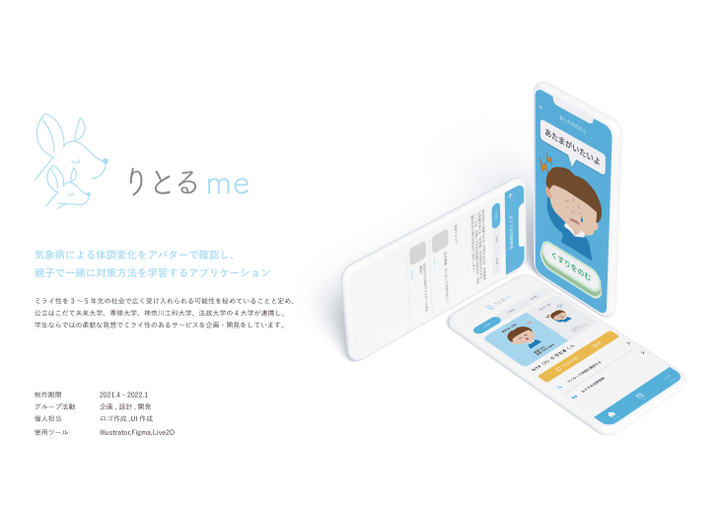 一年間のプロジェクト学習で、アプリケーション開発のプロジェクトに所属しました。主にデザイナーとしてUI/UXデザインに力を注ぎました。発表会でのポスター、スライド、Zoom背景の制作なども積極的に行いました。