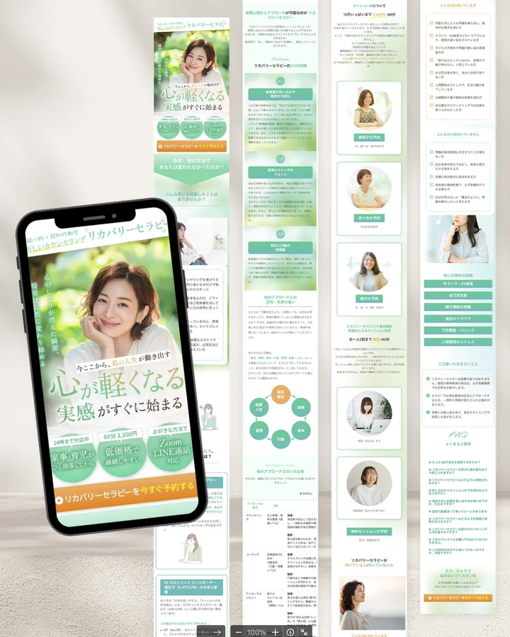 一般社団法人 FP看護師パートナー協会様 リカバリーセラピーサービスLP制作 担当範囲:構成検討・デザイン〜構築(WordPress)