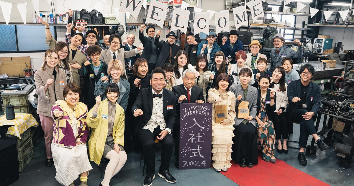 鉄工所でパーティースタイルの入社式。新卒社員がはじめての溶接に挑戦。