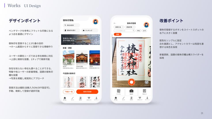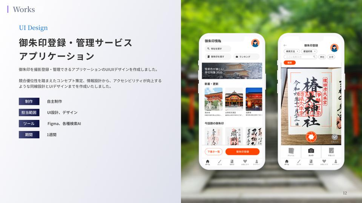 UIデザイン制作 御朱印帳アプリの自主制作を行いました