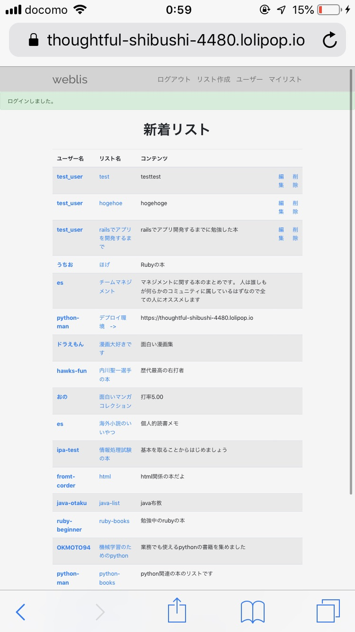 自分のお気に入りの本をリスト化して、他の人と共有できるアプリ。 楽天のwebAPIを使用しており、気になる本があればそのまま購入できます。 4人のチーム開発で開発を行い、私はCRADの部分、モデル設計、フロントエンドを担当しました。