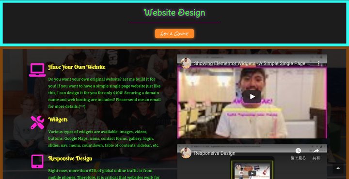 私の趣味紹介サイトです。WordPressを使用して制作しました。英語によるスピーチ、ギター演奏の動画、スケッチを掲載しています。現在はリンク切れです。。。申し訳ございません。