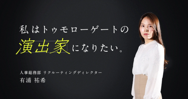 人事総務部リクルーティングディレクター。 前職では、Webコンサルティング会社にて営業として入社したのち、人事を5年間経験し1500人以上の面接を担当。 今後のライフステージに備え転職を考えていた際、トゥモローゲート社員の人柄や「家族を大事にする文化」に惚れ、2023年にトゥモローゲートへ。 現在は採用戦略の立案や説明会・選考の進行管理などの採用業務に奮闘中。