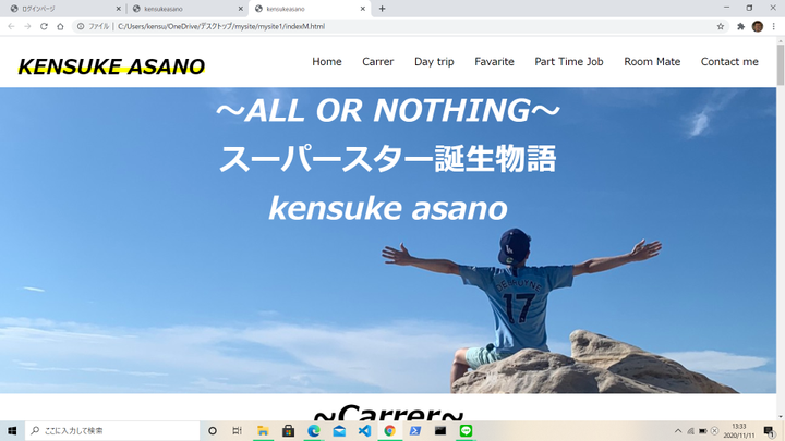 一番初めのポートフォリオです。HTMLとCSSを使って自己紹介サイトを作ってみました。