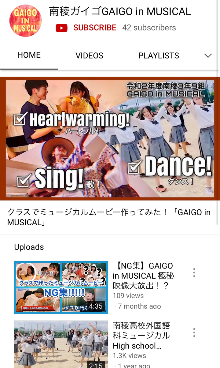 高校三年次に私が監修をしてクラスメイト全員と共に制作したミュージカルムービー。 本編の他にも、本編中のパートごとにあるプロモーションビデオやメイキングもあり、盛りだくさんなチャンネルになっている。 *詳しくは学歴欄をご覧ください