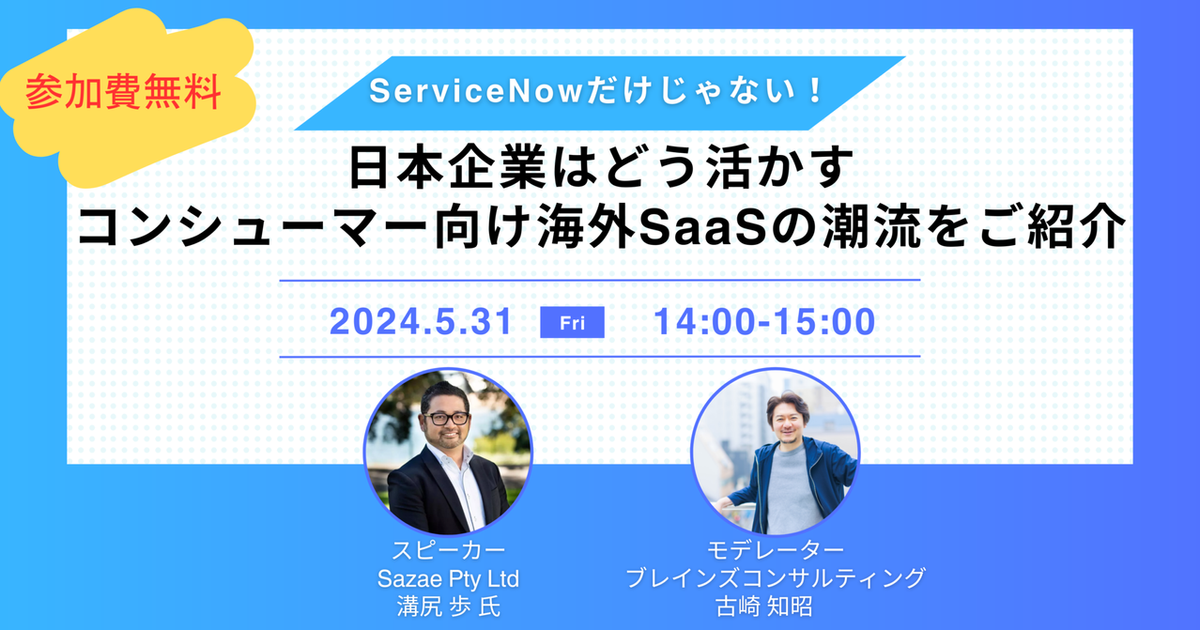 ウェビナー告知: ServiceNowだけじゃない!日本企業はどう活かす、コンシューマー向け海外SaaSの潮流をご紹介
