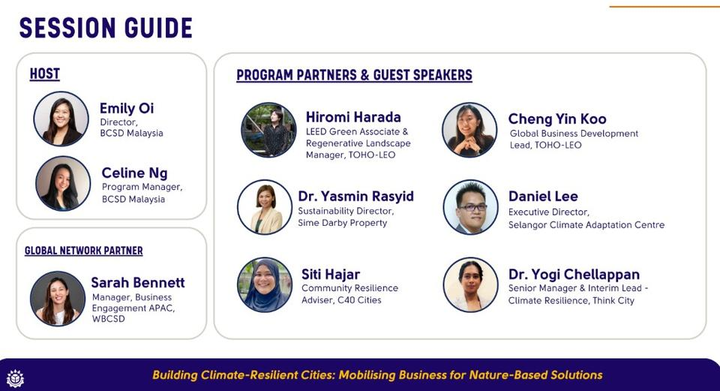 2025年8月27日|📍 マレーシア・クアラルンプール 東邦レオは本シンポジウムに登壇し、Sime Darby Property、Selangor Climate Adaptation Centre、WBCSD、UM Living Lab、Better Bamboo Buildings、Think City などの関係者と、Nature-Based Solutions(NbS)を活用した気候レジリエントかつ再生型の都市づくりについて意見交換を行いました。 議論では、地域コミュニティ・企業・行政が連携する人中心・共創型のNbSアプローチに加え、日本におけるグリーンインフラの実践事例や制度設計についても共有し、東南アジア各国における都市・環境分野への応用可能性について議論しました。
