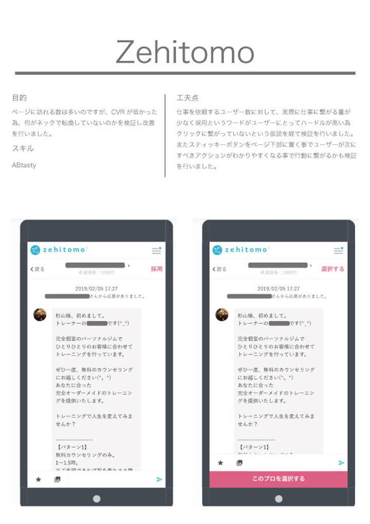 転換率の低さに仮説を立て、検証をABtestで行いCVRを向上させました。