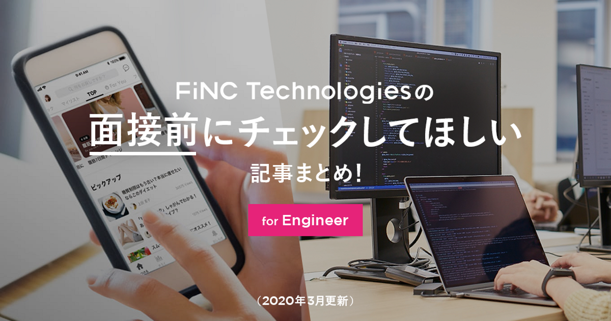 こんにちは、株式会社FiNC Technologies 人事戦略部の佐伯です! FiNCの面接前に、是非ご覧になっていただきたい記事をカテゴリー別にまとめました。お互いにとって有意義なお時間にで...