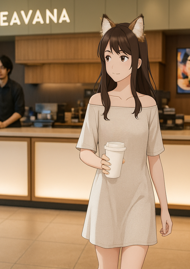 アニメキャラと実写を融合させた動画を生成しました。 細かい修正はCanvaで行っています。