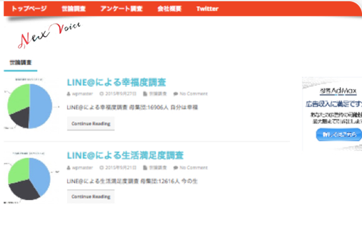 高校生ベンチャー「NexVoice」による世論調査情報提供サービス。ウェブ関連全般を担当。
