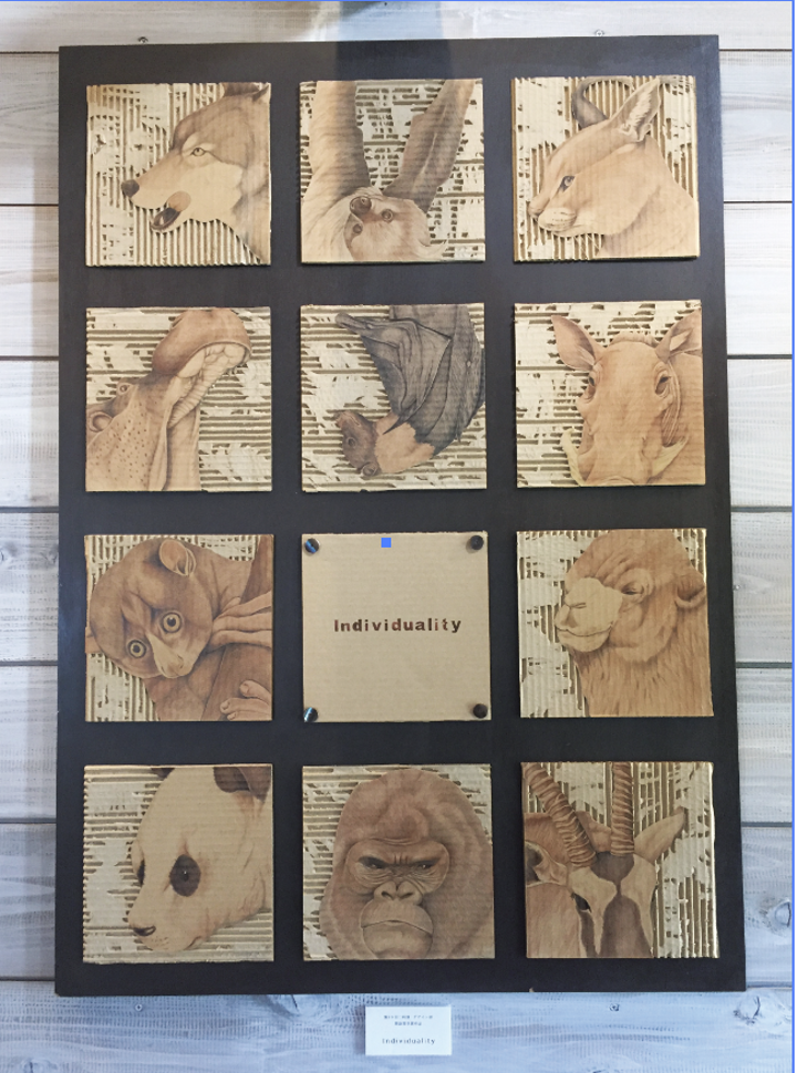 長男を妊娠時に二科展にチャレンジ。段ボールに色鉛筆で大好きな動物を描き、奨励賞をいただきました。