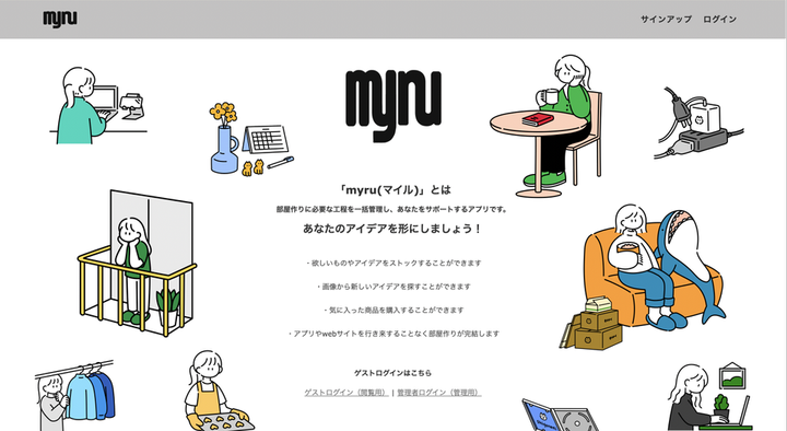 デザインこだわりの部分は自身でデザインしたmyruのロゴ アプリ名を考える時からロゴをイメージしていました!! また、投稿者の写真やアイコンが映えるようアプリのカラーはグレーを選びました 機能面でのこだわりはマイルーム機能 この機能は、自身の欲しいものをリストとして詳細に管理できる機能です 投稿を見る際も可能な限り視覚を邪魔しないためにスライドできるよう工夫しました