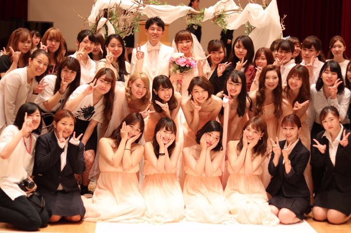 ウエディングセレモニーの授業で実際に一から挙式をグループのみんなで作りました。 3チームで競う形式のため当日オープンキャンパスにお越しいただいた一般の方に審査していただきました。 中には涙する方もいらっしゃったので良い雰囲気で式を終えることができました。 新郎のみ外部の方にお願いして出演して頂きました。 花嫁のドレス選びも実際にドレスショップへ足を運び採寸をしたりしてから決めました。 私はブライズメイドを担当し、ダンスや花嫁のサポートをし円滑に式を行えるよう尽力しました。 関連リンクより模擬挙式の準備~本番までの様子が見られます