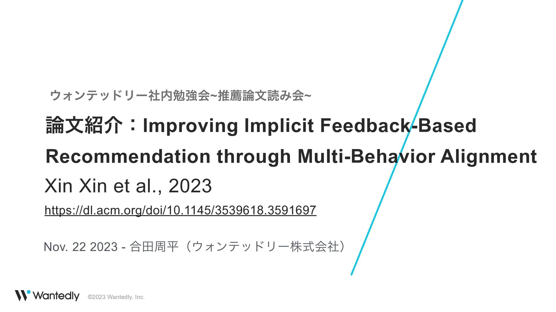論文紹介: Improving Implicit Feedback-Based Recommendation through Multi-Behavior Alignment(Xin Xin et al., 2023)