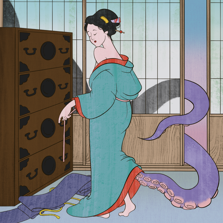 桂枝之進率いるZ世代の落語プロジェクト「Z落語」によるアパレルブランド「ZuZuZuit!」のTシャツ制作にイラストレーターとして携わりました。「春画」をテーマに、Z世代の心に刺さる色使いと浮世絵特有の平面的な画風で仕上げました。
