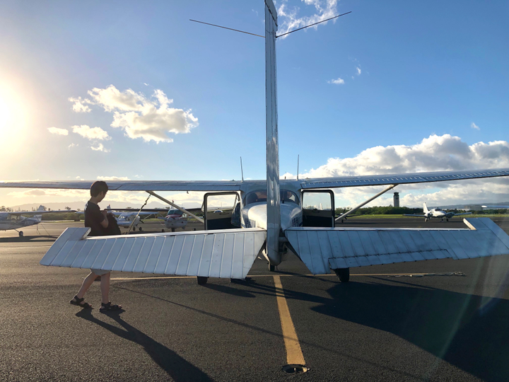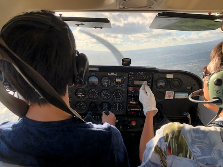 インストラクターから「夢を諦めないで!」の一言は、倅に響いただろうか? 「操縦は自転車と同じで簡単ですから(笑)」の一言は、気流でガタガタと揺れる機内後部座席の私には心強く響きました!?