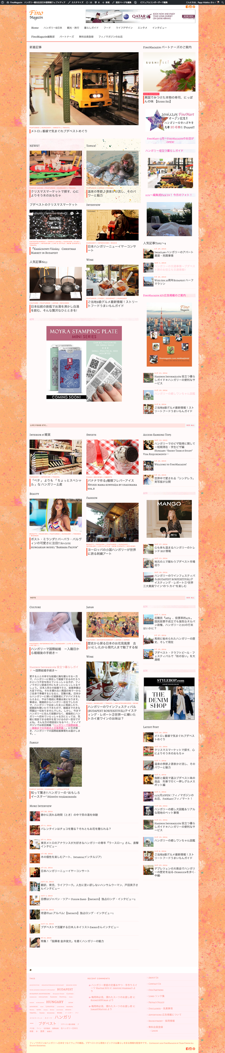 ハンガリー人クリエイター数名とともに主宰するブダペスト発ニュースマガジンサイト。 Finom=ハンガリー語で美味しい、心地よい、をテーマにしたハンガリーにまつわる情報を主に更新しています。