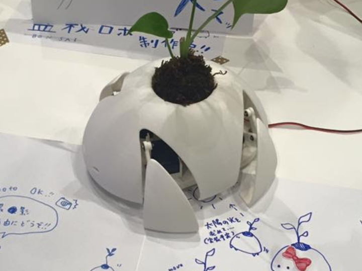 盆栽を背負って生きていく亀形ロボットです。強化学習によりPC上の物理シミュレーションで初期〜中期の歩行学習をし、後期には歩行学習に実体で行うという、モデルベースの強化学習を実践。将来は太陽電池で電力を供給し、自活できるロボットになる予定です。