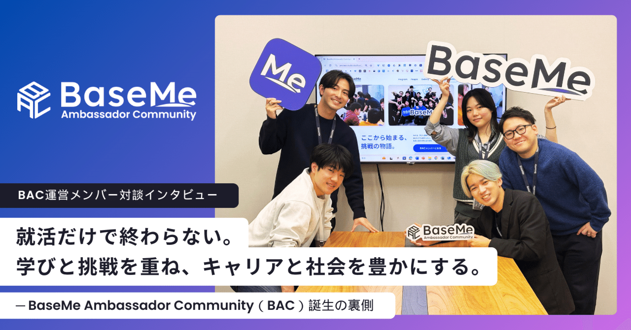 2025年11月よりUser Community事業責任者として異動。コミュニティマネージャーとしてZ世代向けの学生コミュニティ「BaseMe Ambassador Community」を立ち上げ、既存ユーザーのLTV向上や質の高い新規ユーザーの獲得をミッションとしています。現在は6名のインターン生をマネジメントしながら、アライアンス・協賛渉外、イベント企画、SNS運用まで幅広く担当。