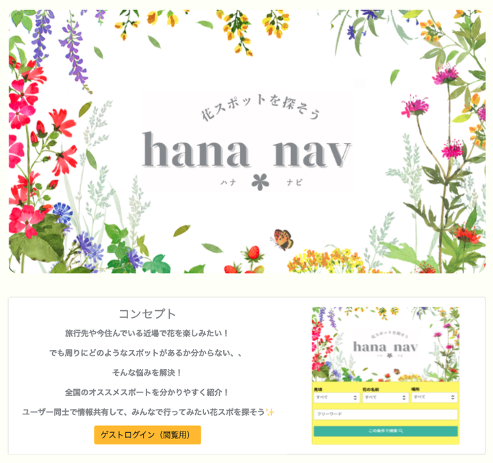 アプリ名:全国にある花の名所を探すことができる共有サイト「花ナビ」