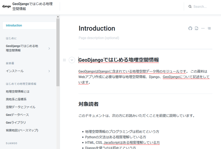 GeoDjangoはDjangoに含まれている地理空間データ用のモジュールです。 この資料はWebアプリ作成に必要な簡単な地理空間情報、Django、GeoDjangoについて記述をしています。