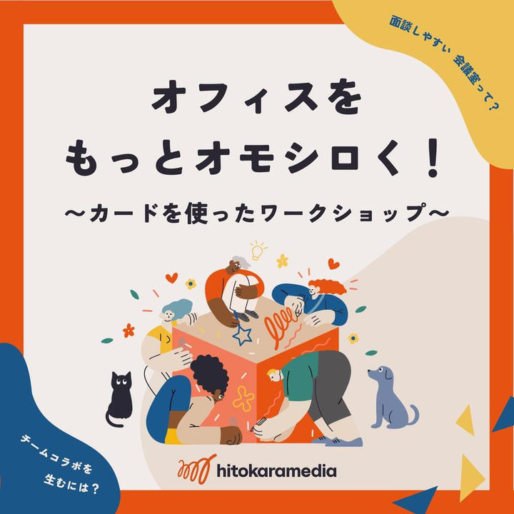 【人事図書館主催のイベント「人事祭」にさまざまな形で参画】 ①内装デザイン:参加型のフォトスポットとして人事祭ロゴの寄せ書きパネルを企画・制作。その他バルーンアーチ等。 ②企業出展:ヒトカラメディアとして「オフィスをもっとオモシロく!〜カードを使ったワークショップ〜」をテーマに出展。 ③参加:人事図書館メンバーとして参加。